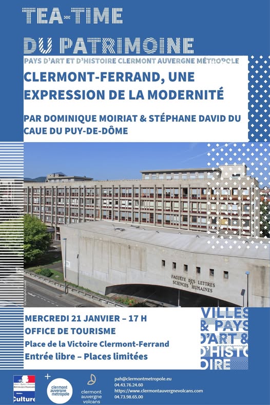 Clermont-Ferrand, une expression de la modernité : présentation de l’application Archistoire et du parcours présentant les bâtiments labellisés Architecture Contemporaine Remarquable de Clermont-Ferrand par Dominique Moiriat et Stéphane David du CAUE du Puy-de-Dôme (Conseil en Architecture, Urbanisme et Environnement).